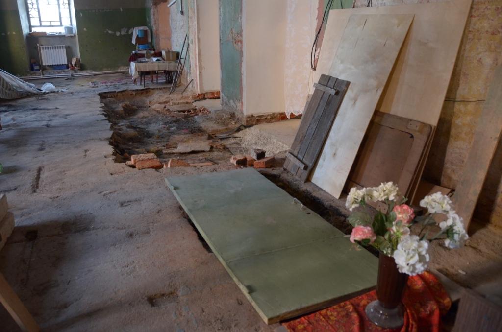 Для обустройства архива на полу положили асфальт, могилу священнослужителя, личность которого теперь не удается установить, разграбили, но зато в помещении регулировали влажность для хранения бумаг.