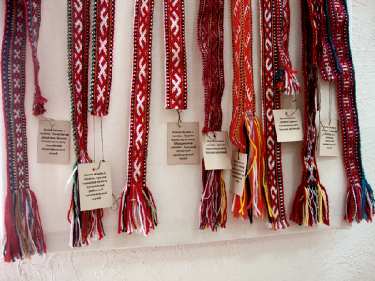 Особое слово на выставке сказано о поясах и тесьме. Тканые украшения и аксессуары, сохранившиеся и созданные вновь по уникальным образцам этнографических коллекций тульских и российских музеев, помогут оценить эстетику кропотливого труда русских женщин.
