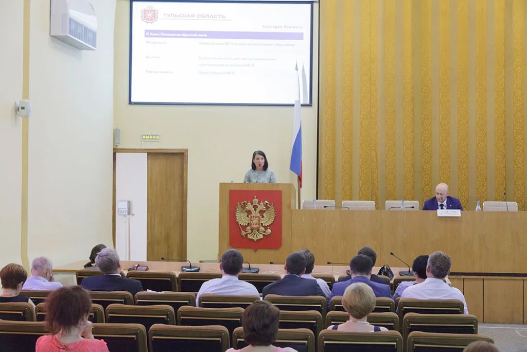 Екатерина Солтанова рассказала участникам о создании системы рейтинга и методики определения состояния предпринимательского климата для оценки состояния и развития малого и среднего бизнеса в муниципалитетах. Было отмечено, что ежегодно Тульская область участвует не только в федеральных рейтингах оценки инвестиционного и предпринимательского климата, но и проводит региональные замеры различных показателей. Создана система оценки деятельности администраций муниципалитетов по созданию благоприятного предпринимательского климата и состояния развития бизнеса.В настоящее время выделяются 9 основных критериев, которые разбиваются на 3 блока показателей: статистические, стимулирующие и показатели обратной связи с бизнесом.