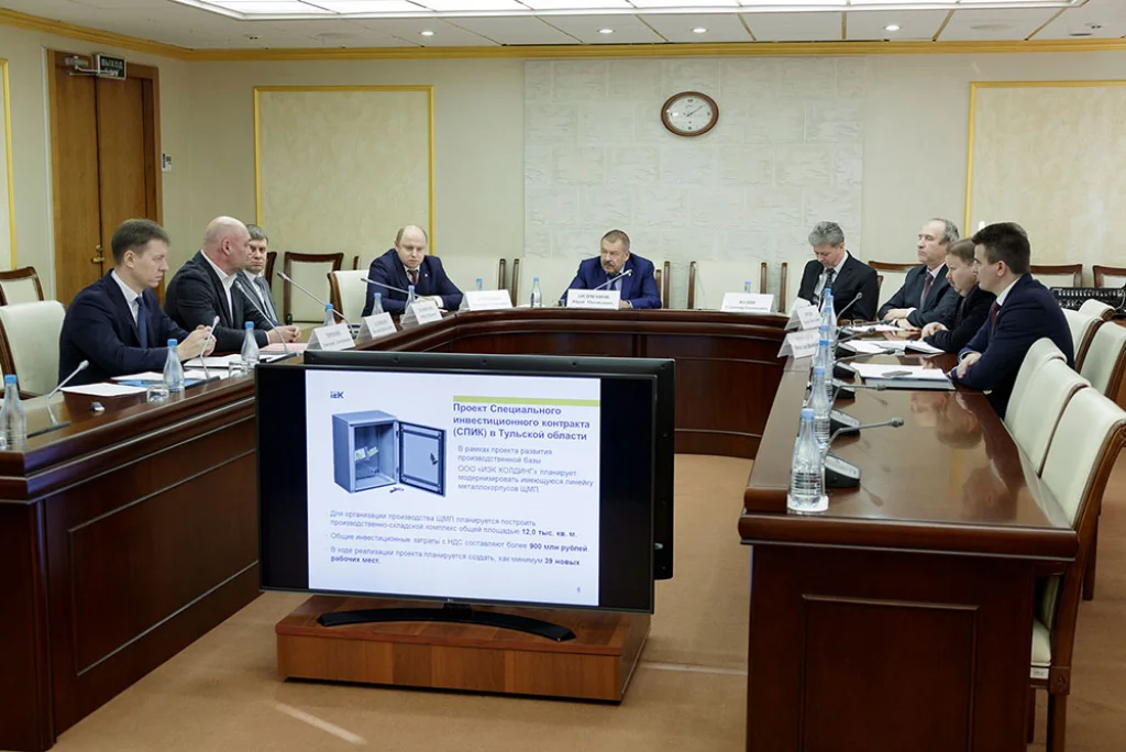 Первым заявлением на заключение регионального СПИК, представленным на рассмотрение комиссии, стал проект компании ИЭК Холдинг по расширению своей производственной площадки в г. Ясногорске. В ходе презентации инвестиционного проекта «Модернизация производства металлокорпусов» заместитель генерального директора по стратегическому развитию группы компаний «ИЭК» Валерий Адлюков, отметил, что объем инвестиций в проект составляет около 800 млн рублей, будет создано 39 новых высокопроизводительных рабочих мест, а объем планируемых налоговых отчислений в региональный бюджет составляет 224 млн рублей. Для организации производства новой линейки металлокорпусов планируется построить производственно-складской комплекс общей площадью 12 тыс. кв. м, оборудованный роботизированными линиями.