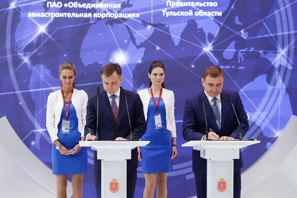 Губернатор Тульской области Алексей Дюмин и президент ПАО «Объединенная авиастроительная корпорация» (ОАК) Юрий Слюсарь подписали соглашение о стратегическом партнерстве.