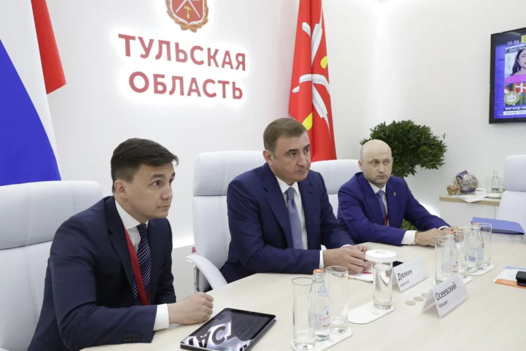 24 мая на Петербургском международном экономическом форуме прошла рабочая встреча Губернатора Тульской области Алексея Дюмина и президента ПАО «Ростелеком» Михаила Осеевского.