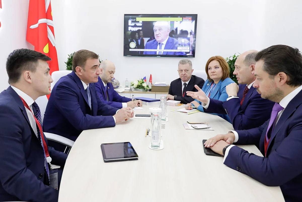 Губернатор Тульской области Алексей Дюмин провел встречу с председателем правления ГК «Росавтодор» Сергеем Кельбахом сегодня, 24 мая, на Петербургском международном экономическом форуме. Обсуждались вопросы развития автомобильной трассы М-4 «Дон».