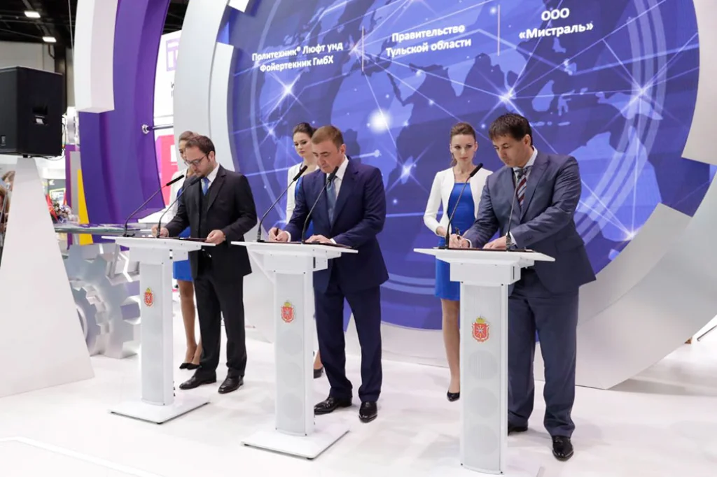 24 мая на полях ПМЭФ-2018 Тульская область и ООО «Мистраль» заключили соглашение о сотрудничестве при реализации инвестиционного проекта.
