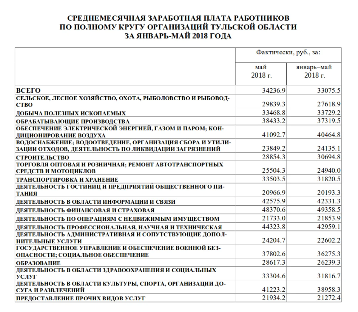 По информации Туластата, согласно данным за май текущего года, больше всех снова заработали финансисты и страховщики. Среднемесячная зарплата представителей этих профессий составила 48 370, 6 рублей. На втором месте — представители научно-технической деятельности — 44 323,8 рублей. На третьей строчке расположились те, кто работает в области информации и связи – 42 575,9 рублей.