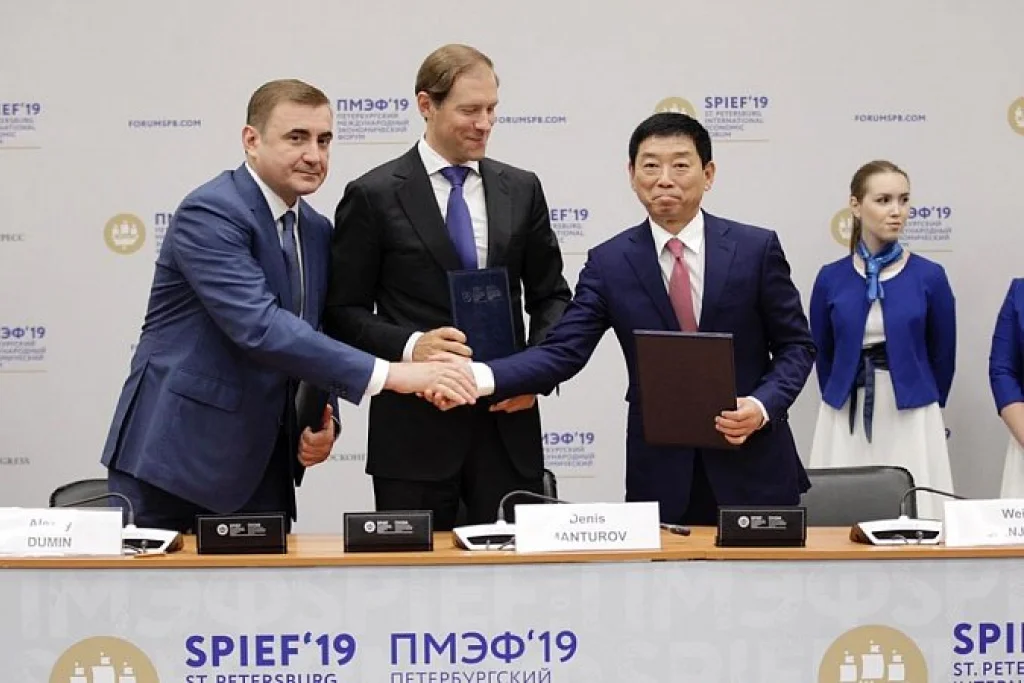 6 июня в рамках ПМЭФ-2019 соглашение о намерениях в отношении заключения специального инвестиционного контракта подписали Министр промышленности и торговли РФ Денис Мантуров, губернатор Тульской области Алексей Дюмин и председатель правления Great Wall Motor Вэй Цзяньцзюнь.
