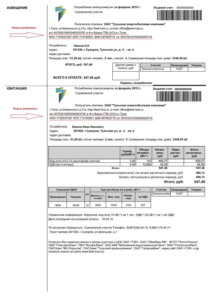 В начале апреля жители Тулы и Тульского региона получат квитанции на оплату электроэнергии за март уже с новыми платежными реквизитами.