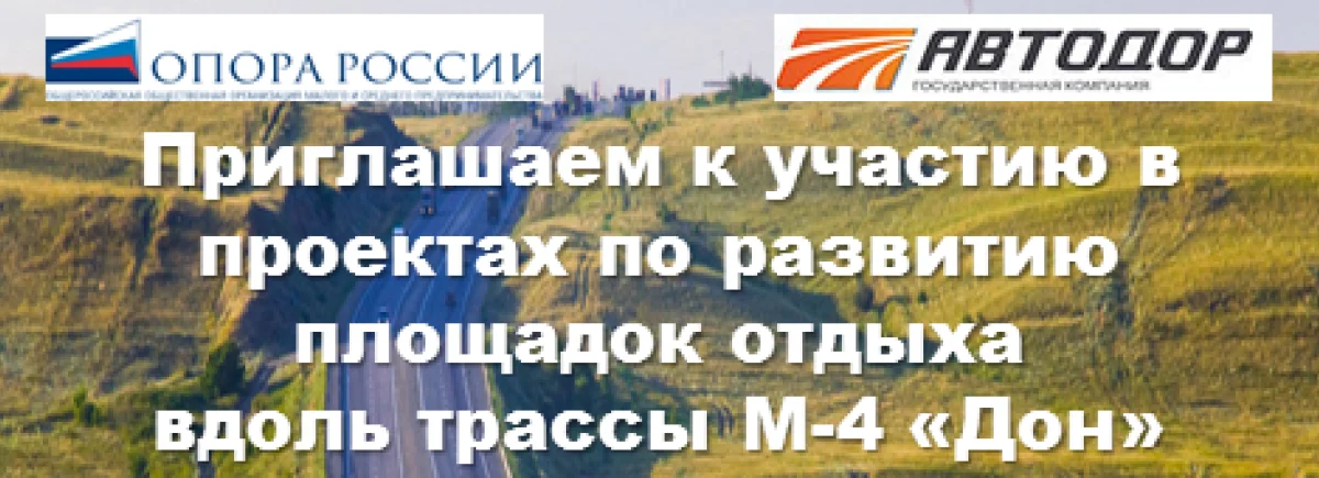 «Опора России» приглашает к участию в проекте по организации и обустройству площадок отдыха - пункта общественного питания и/или магазина на автомобильной дороге федерального значения М-4 «Дон».