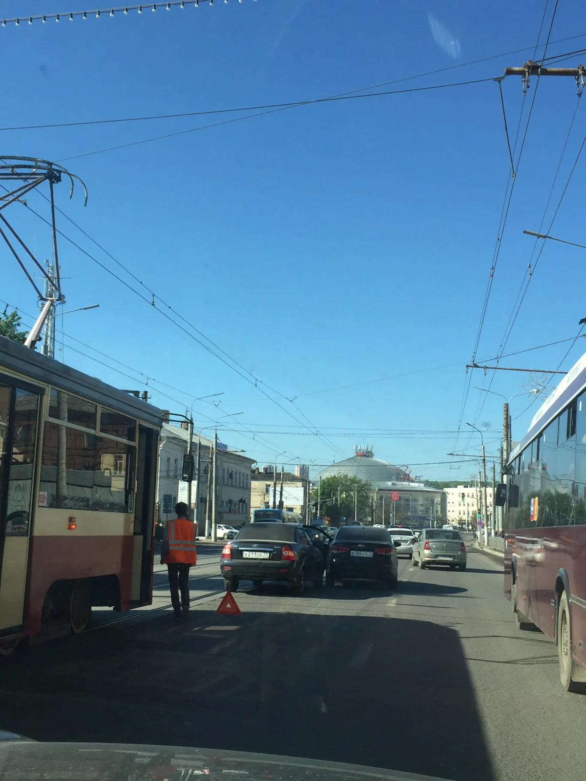 Пролетарский мост в Туле встал в пробке: авария, трамваи стоят