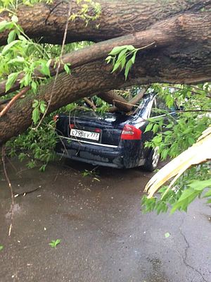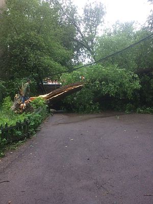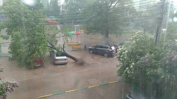 В Туле порывы ветра достигали 16-18 м/с. Ураган сопровождался ливнями и грозой. В некоторых районах можно было наблюдать крупный град.