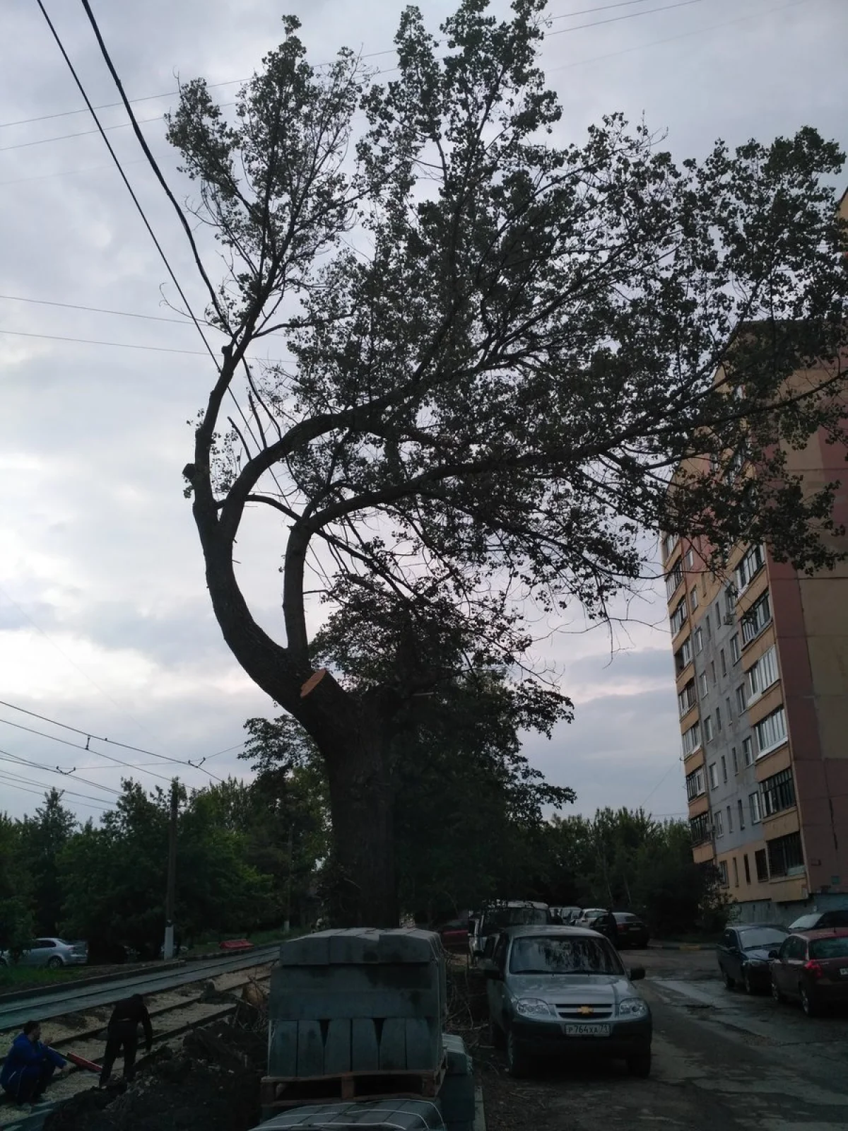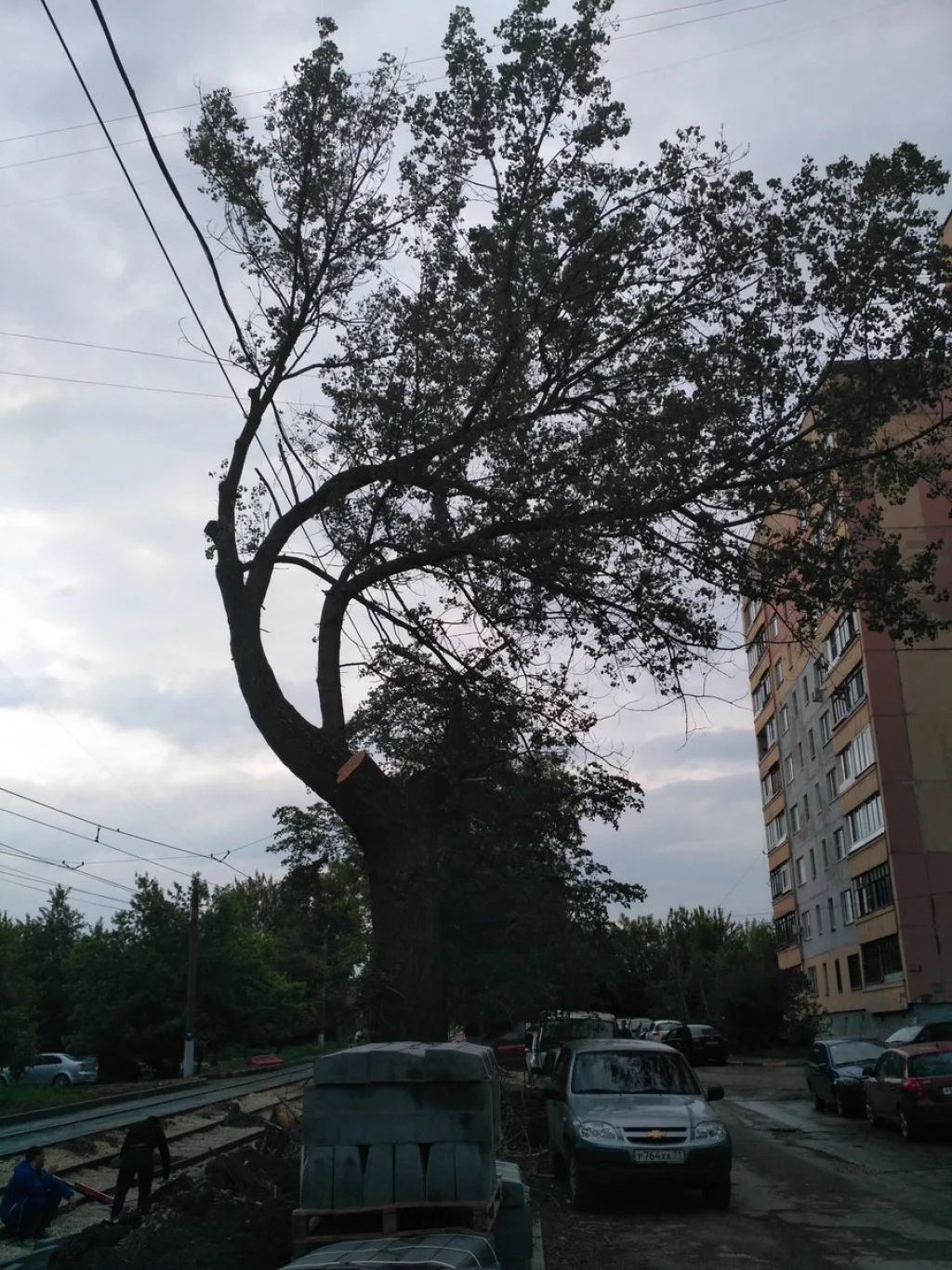 В Туле на ул. Марата дерево опасно нависло над проводами