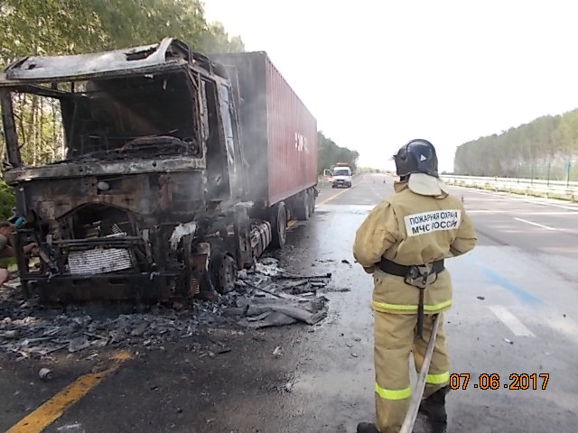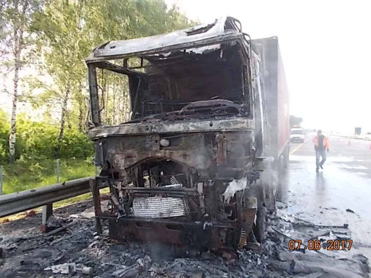 7 июня в 16:05 на 204 км трассы «Москва-Дон», в Киреевском районе, загорелся грузовик «Рено».