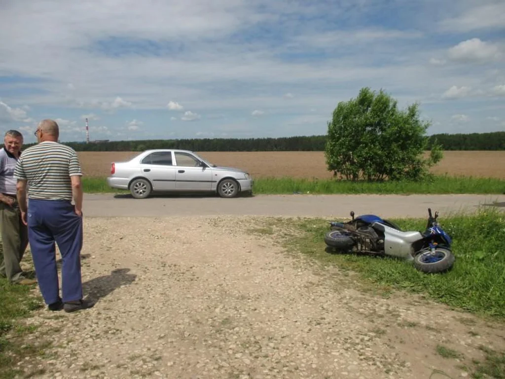 Водитель автомобиля «Hyundai Accent» столкнулся со скутером «Stels» под управлением 11-летнего подростка, не имеющего прав управления.