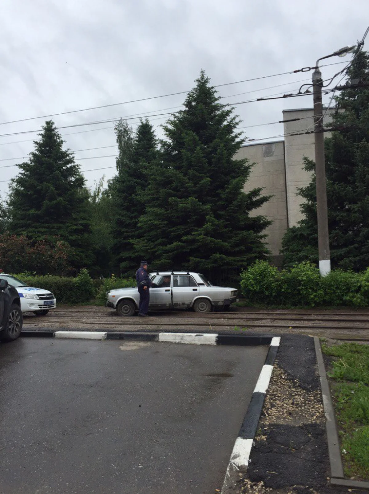 Напротив диагностического центра водитель легковушки каким-то чудом заехал на пути и упёрся днищем в рельсы. Ни вперёд — не назад. По ул. Ф. Энгельса образовалась пробка из трамваев. Прибывшие на место происшествия сотрудники ДПС думаю, что делать. Вероятно, горе-водителя придётся брать на буксир и вытаскивать из ловушки.