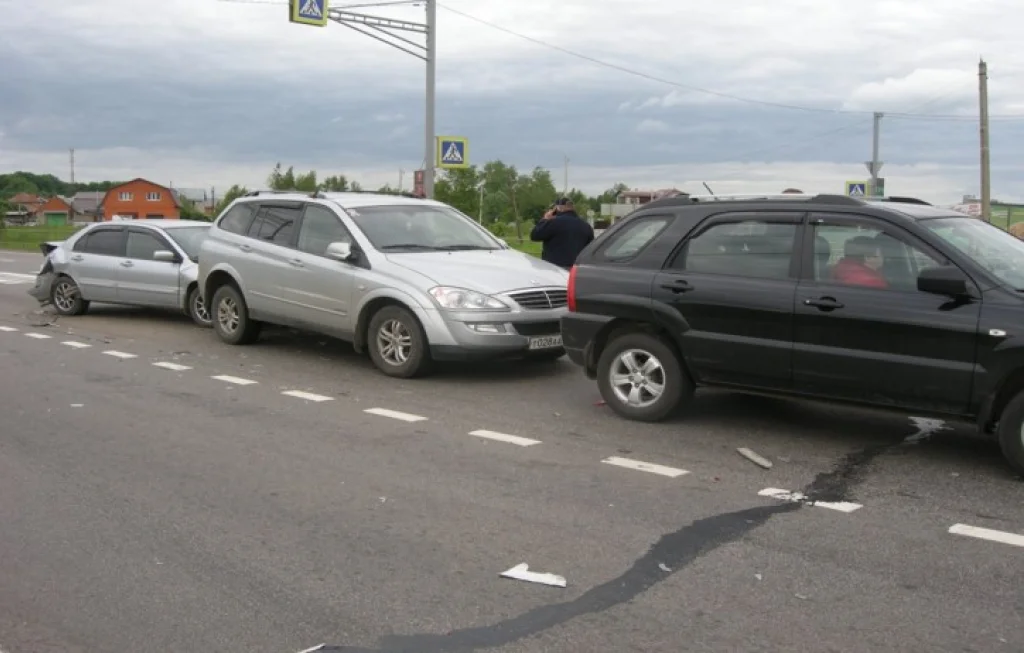 На тульской трассе сразу 4 иномарки столкнулись «паровозиком»