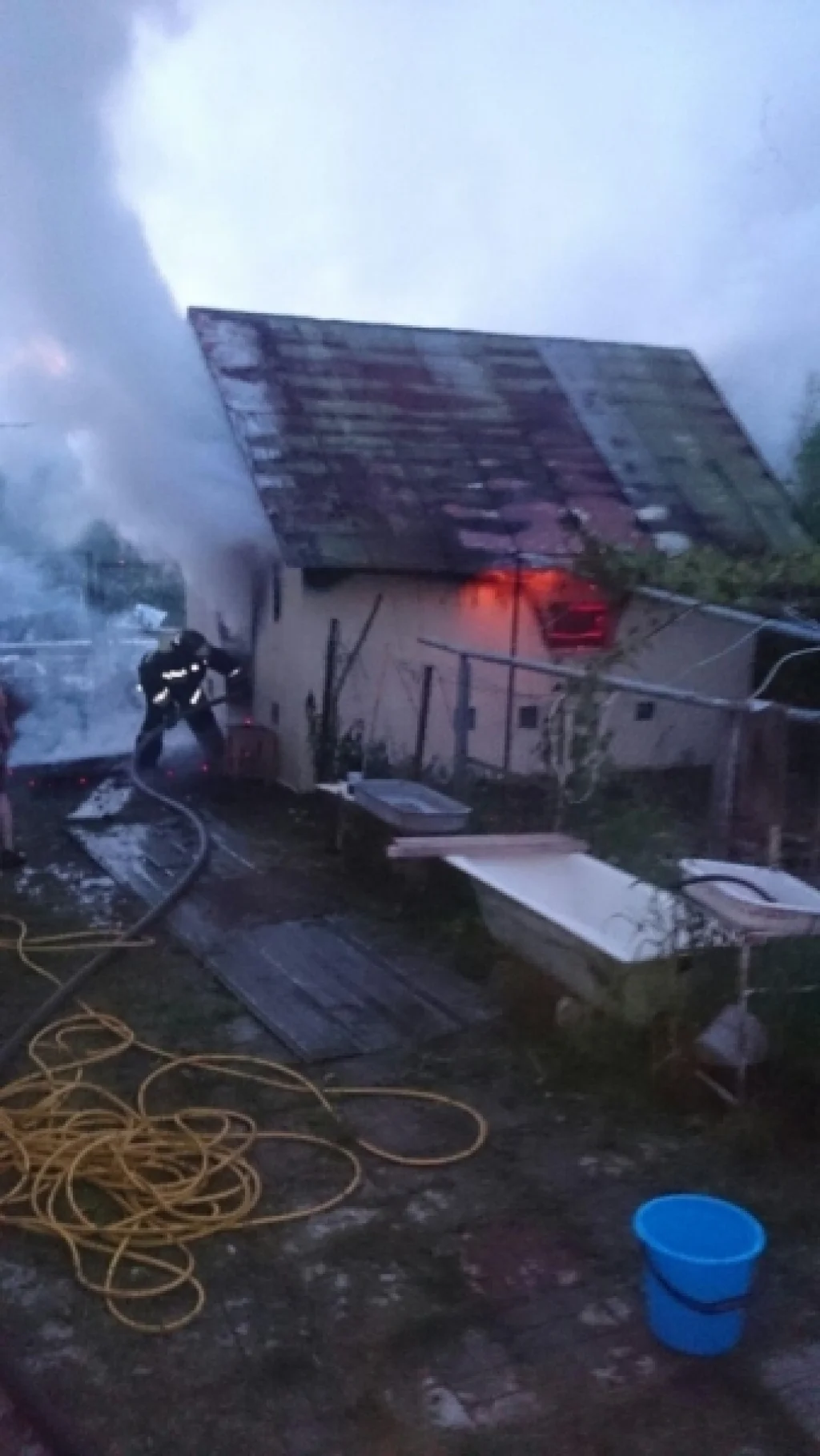 Пострадавших нет. В результате происшествия баня выгорела внутри.