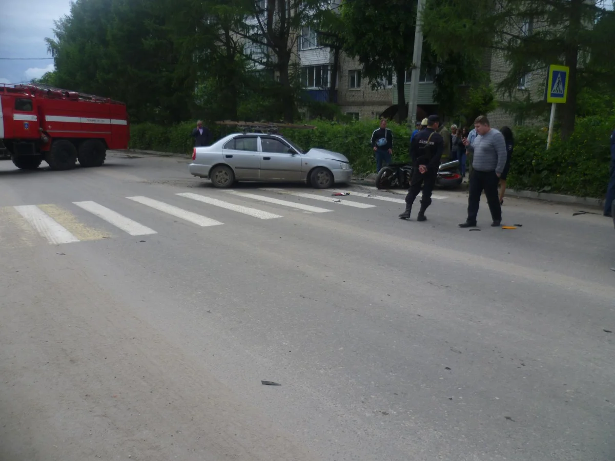 Мотоцикл «Хонда CBR 1100X», на котором ехали двое мужчин, врезался в автомобиль «Хендай Акцент».