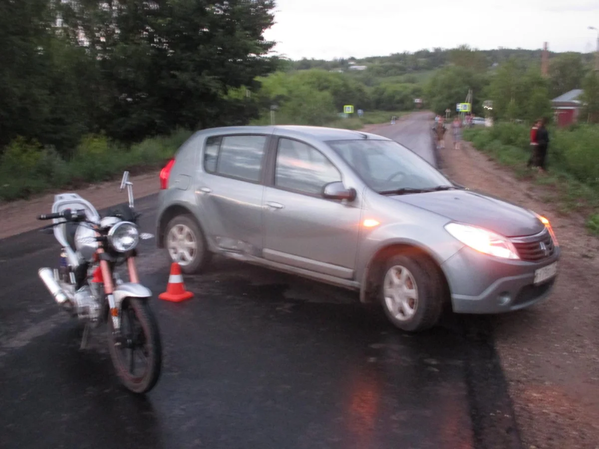 Мужчина 1949 г.р., управляя автомобилем «Рено Сандеро», нарушил ПДД при выезде с прилегающей территории и не уступил дорогу мотоцикл «Ирбис vr-1».