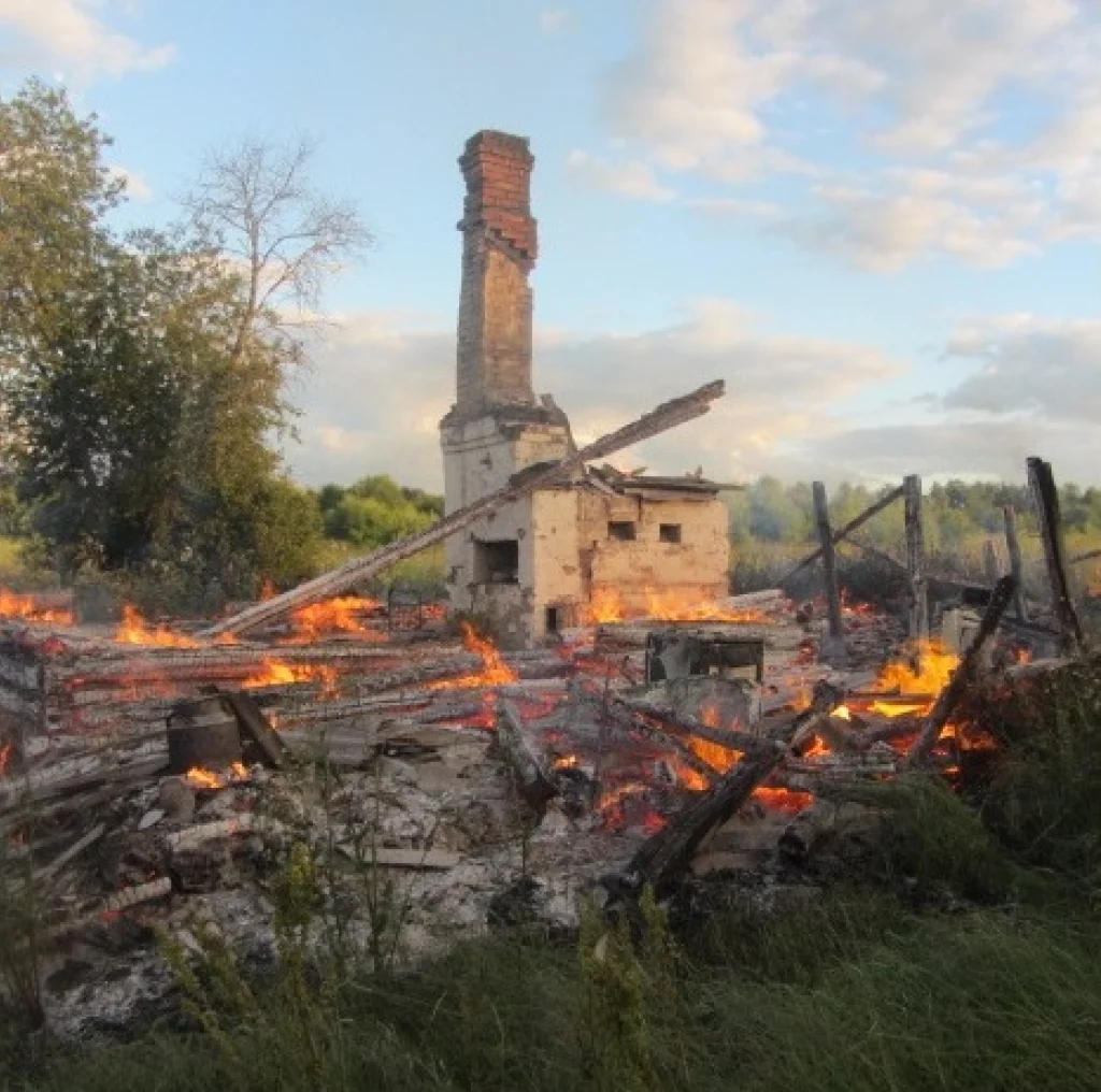 Прибывшие на место происшествия пожарные расчёты боролись с огнём около 20 минут, однако дом спасти не удалось. От него осталась одна каменная печка.