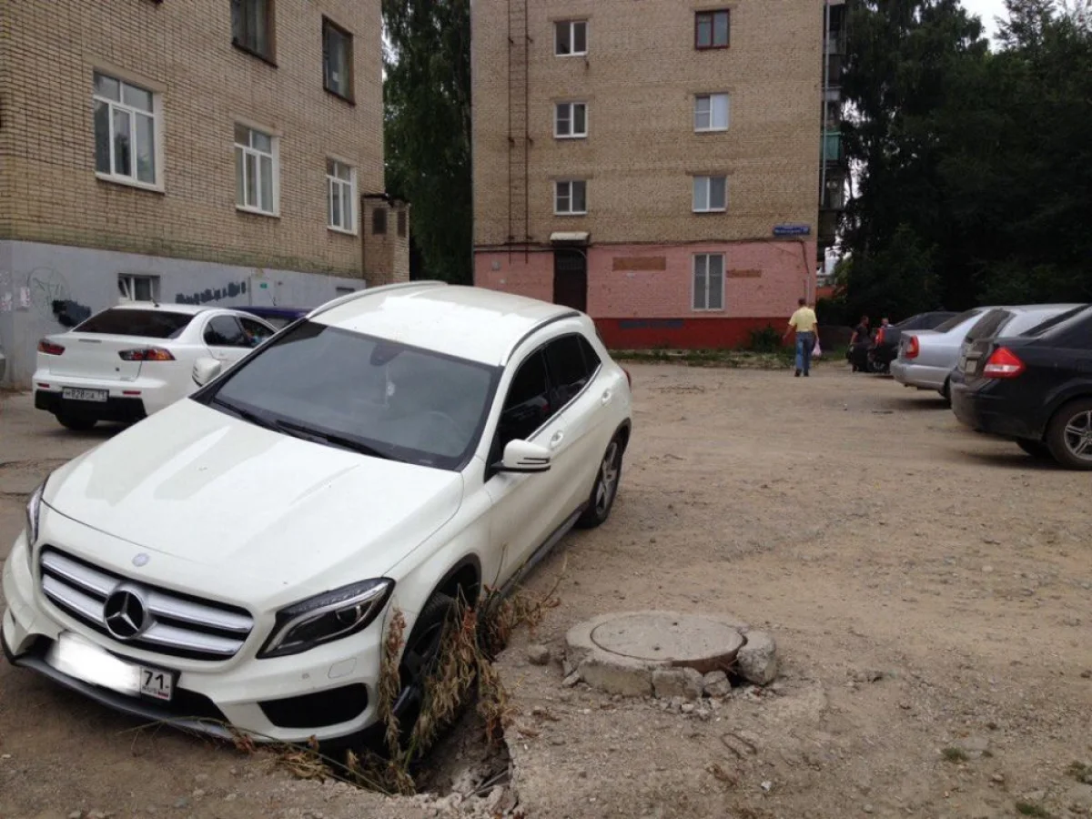 «Мерседес» туляка провалился в канализационный люк
