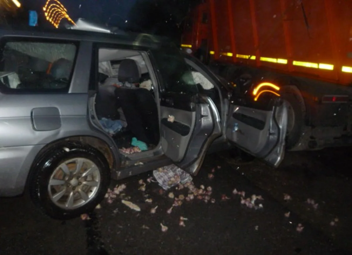 По предварительным данным, водитель иномарки «Субару» не справился с управлением и въехал в грузовик «Камаз».