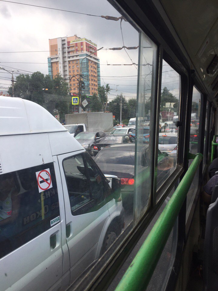 Проспект Ленина стоит в обе стороны до ул. Мира, кроме того, образовались заторы на всех прилегающих улицах: Болдина, Волнянского, 9 мая, Руднева.