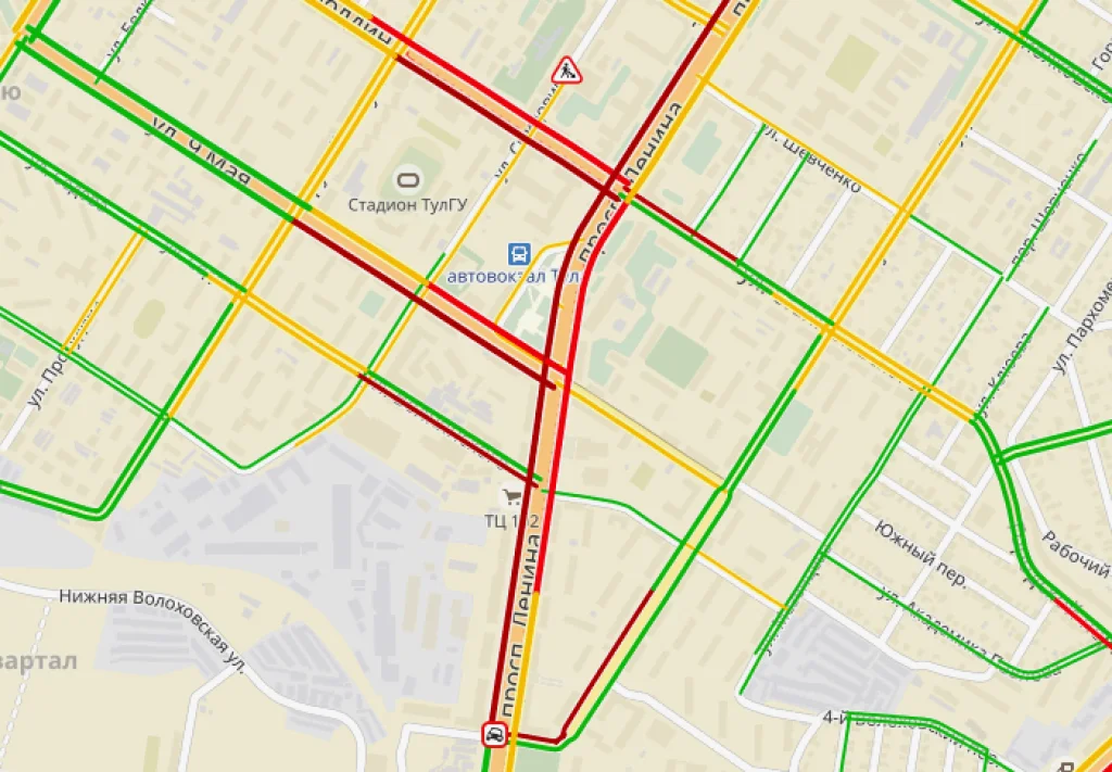 На проспекте Ленина в Туле гигантская пробка из-за ДТП