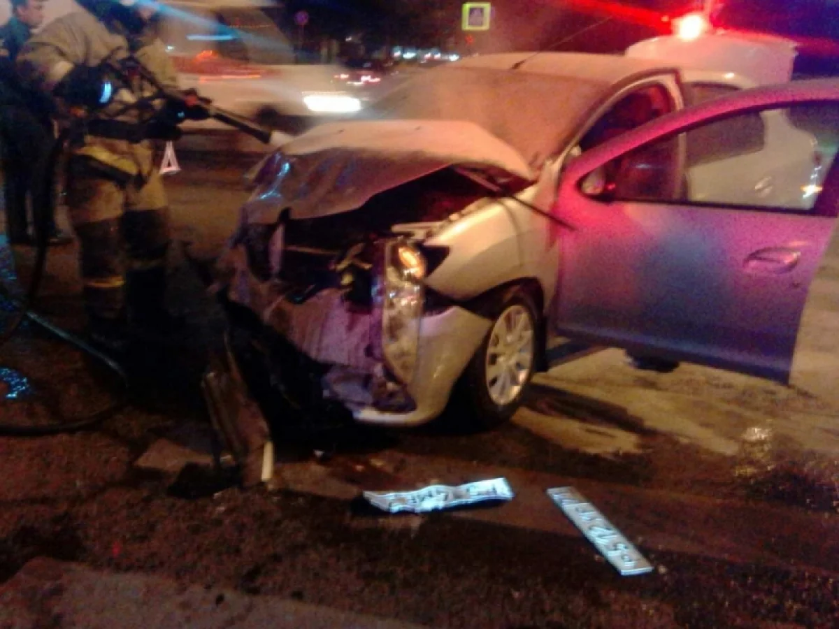 На место происшествия сразу были направлены два пожарный расчета, скорая помощь и сотрудники полиции. В результате столкновения, произошло возгорание в моторном отсеке а/м "Логан", подан ствол СВП-4.
