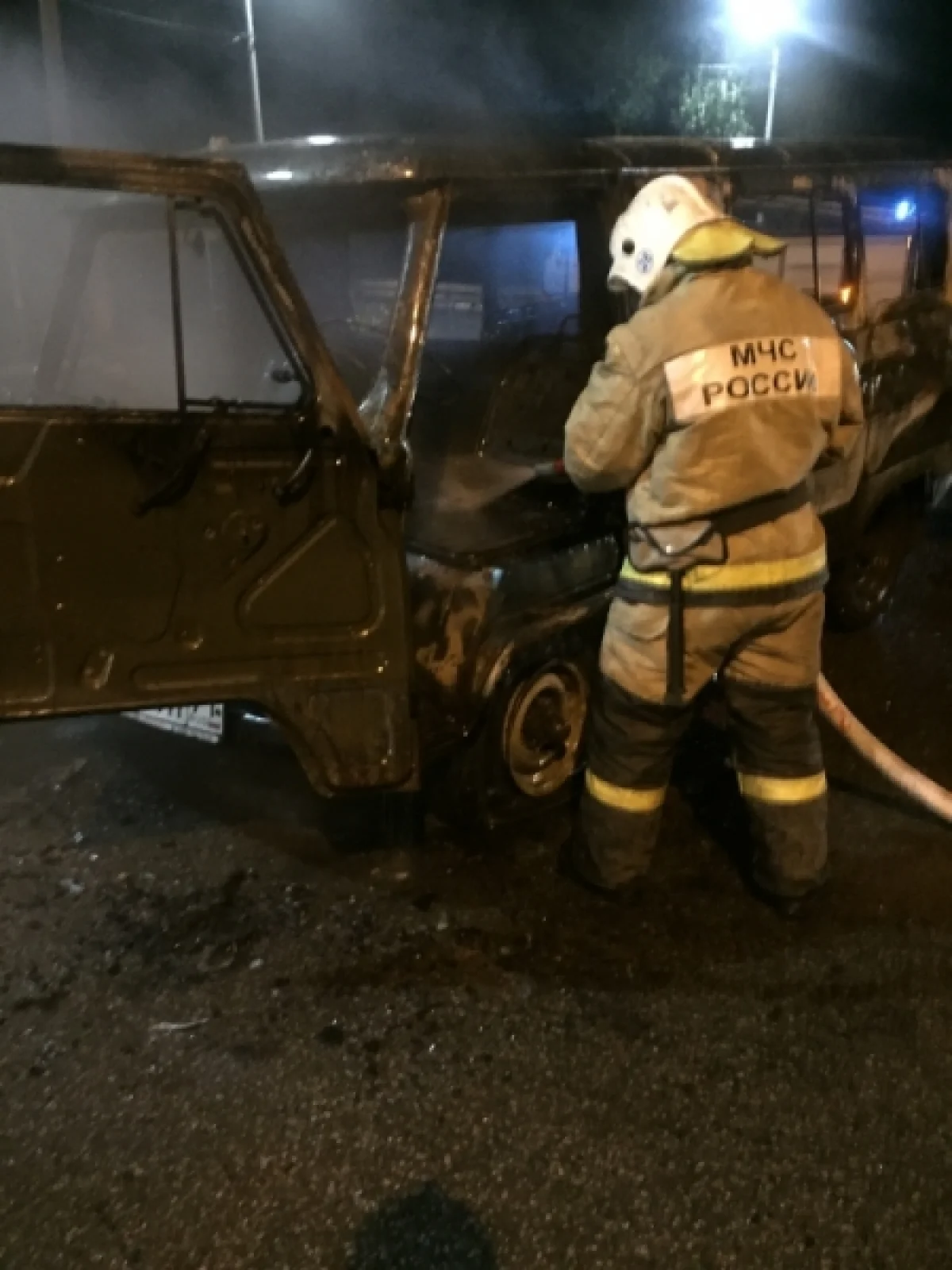 17 августа, ночью, в 22:10, произошел пожар в микрорайоне Горушки на улице Парковая. Там загорелся автомобиль "УАЗ-39099".