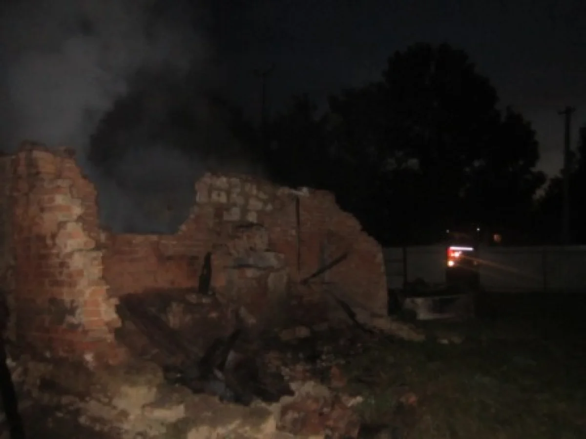 В результате происшествия сгорела и обрушилась кровля, дом выгорел внутри, сгорела деревянная хоз. пристройка. Причина пожара устанавливается.