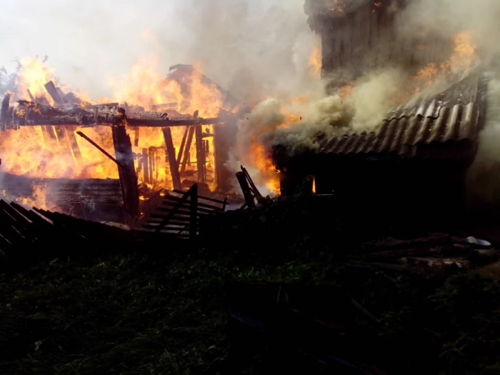 В результате происшествия сгорела и обрушилась кровля, дом выгорел внутри. Причина пожара устанавливается.