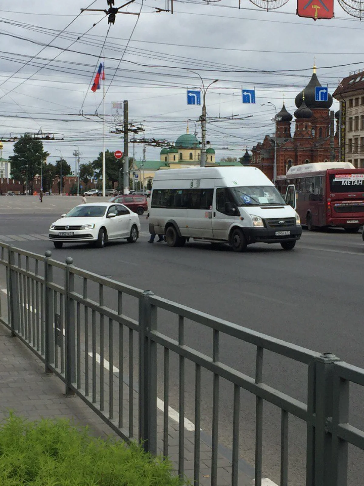 В Туле на ул. Советской дорогу не поделили «Фольксваген» и маршрутка №9.