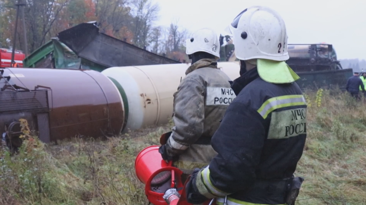 Серьезная авария: ночью под Тулой грузовой состав сошел с рельс и перевернулся