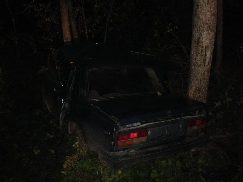 Вечером в минувшую среду на 6-ом километре трассы Поленово — Митино — Ланьшино «семерка» улетела в кювет и врезалась в дерево.