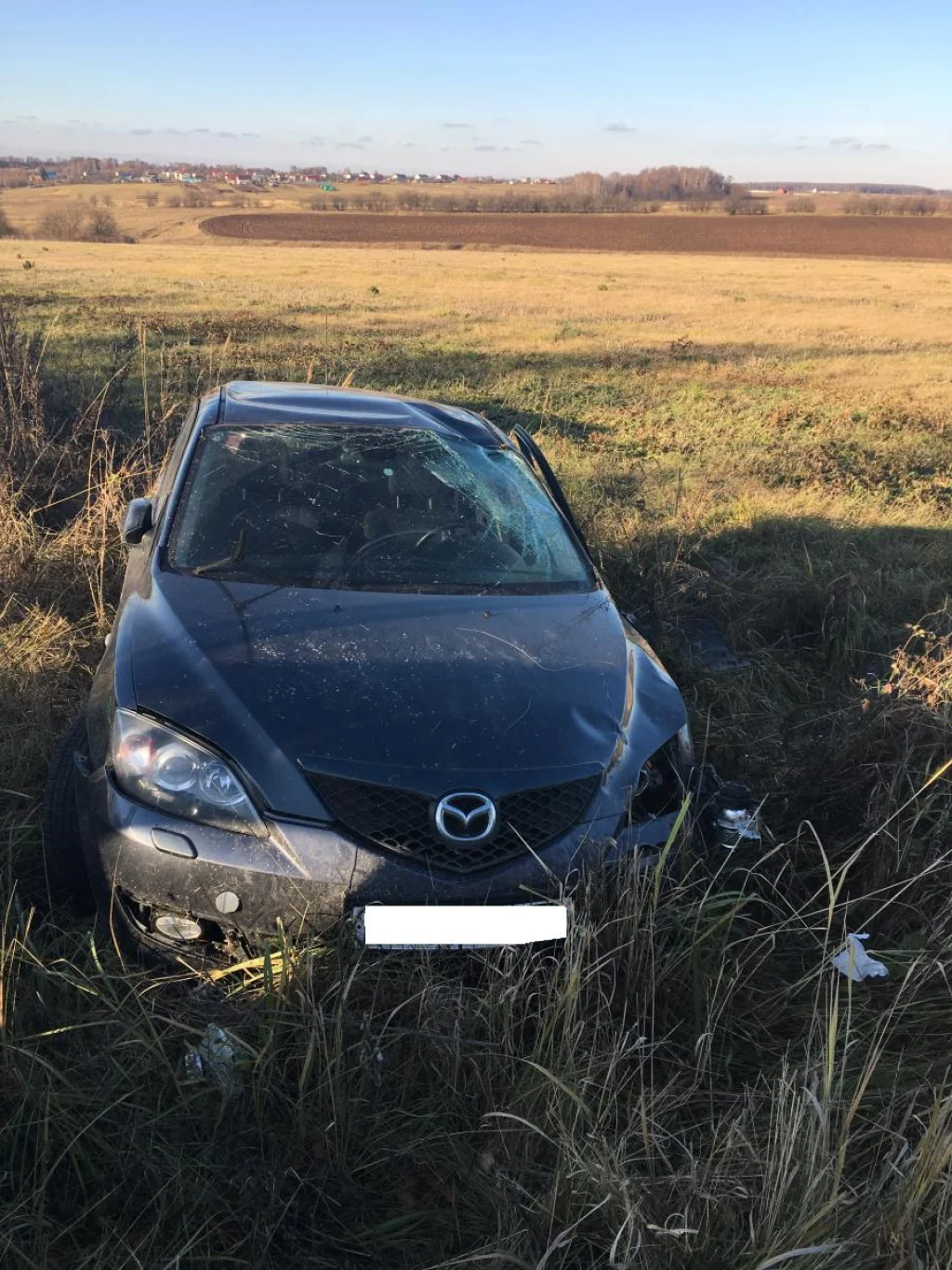 Автоледи на автомобиле «Мазда 3» предположительно не справилась с управлением, съехала в правый кювет и перевернулась.