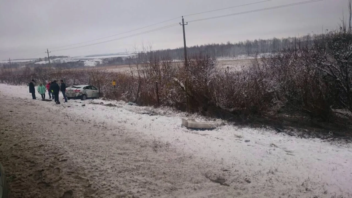 Водитель автомобиля «Ниссан Альмера» предположительно не справился с управлением и съехал в правый по ходу движения кювет с последующим опрокидыванием.