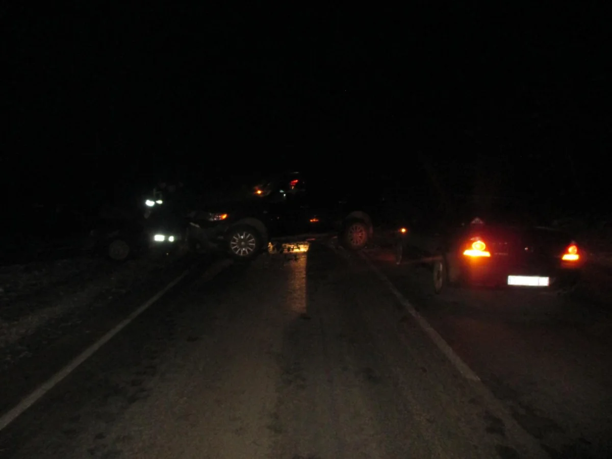 Водитель автомобиля «Митсубиси Паджеро» в состоянии алкогольного опьянения (0.761 мг/л) вылетел на полосу встречного движения и протаранил два автомобиля: «ВАЗ 21144» и «Ниссан Альмера».