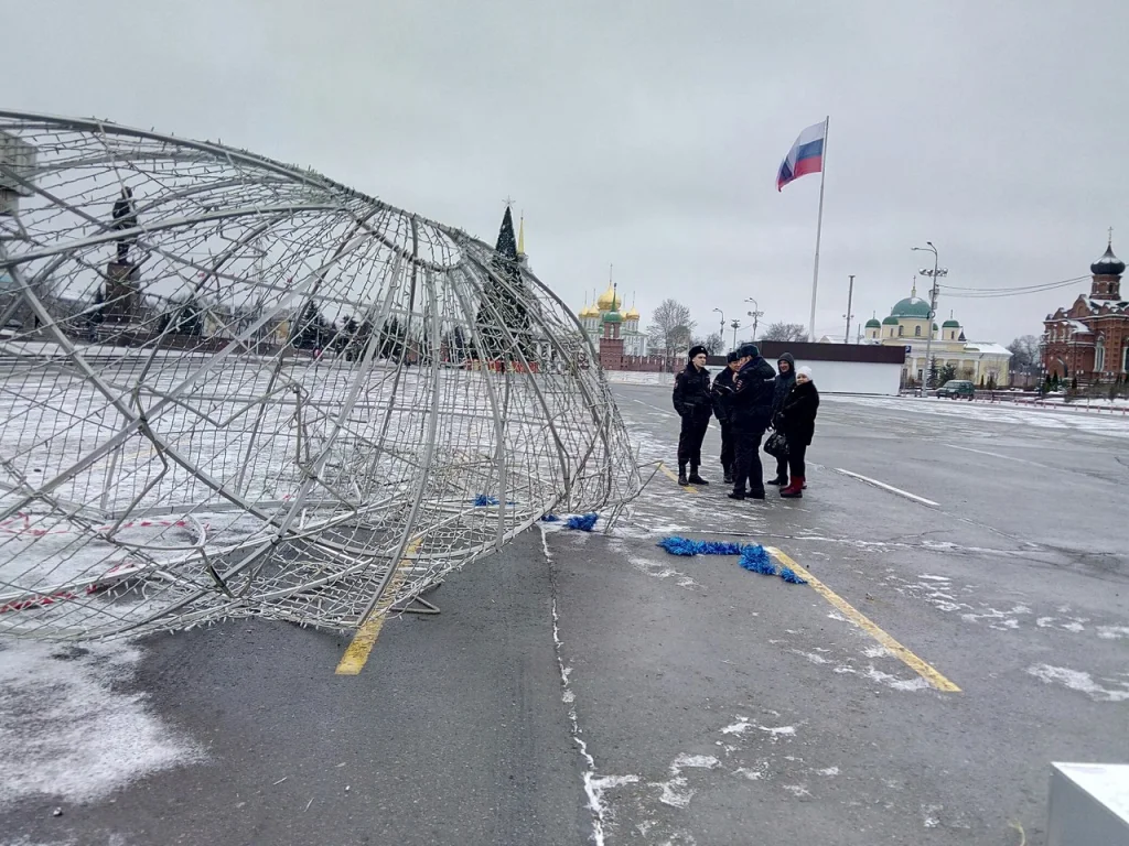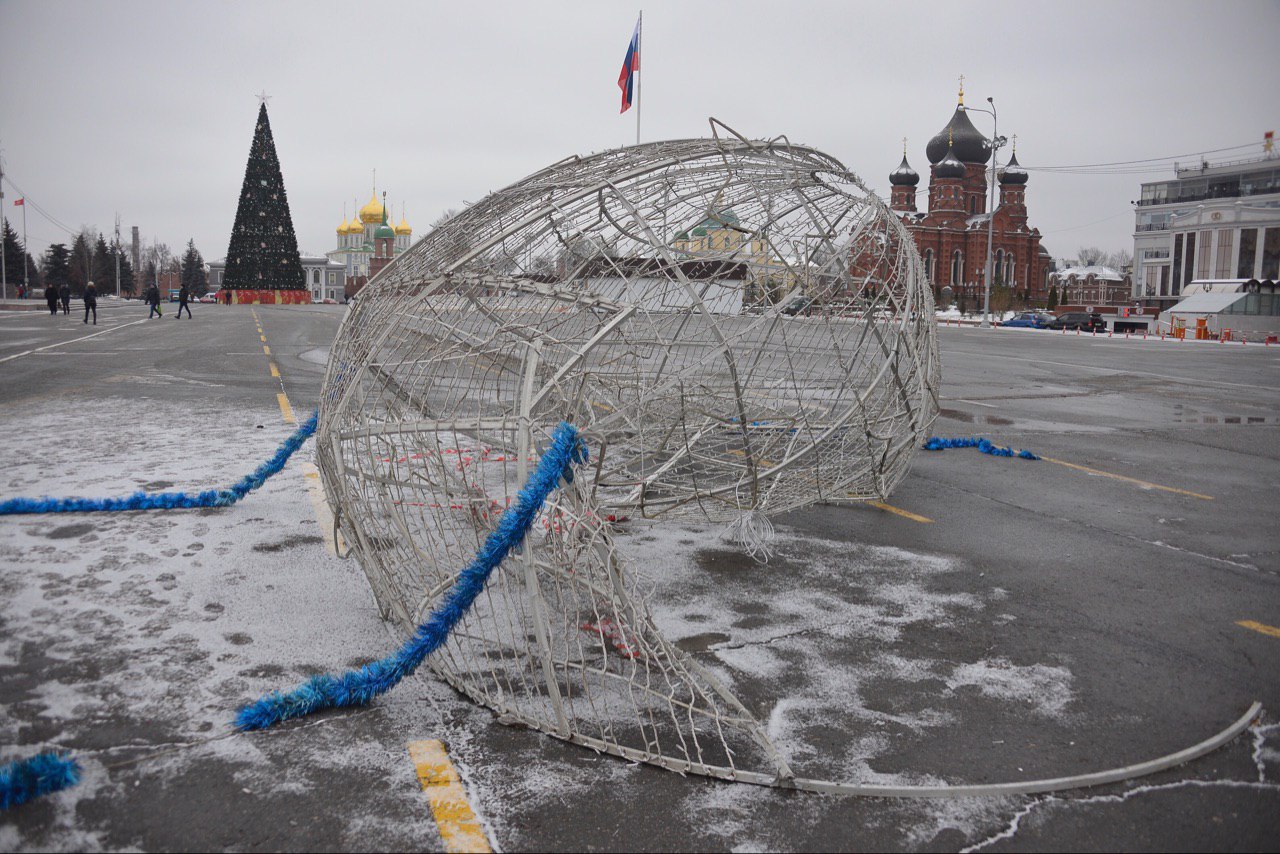 Как стало известно, в Туле на площади Ленина неизвестный водитель влетел на машине в светящийся новогодний шар и сломал его. Виновник с места ДТП скрылся.