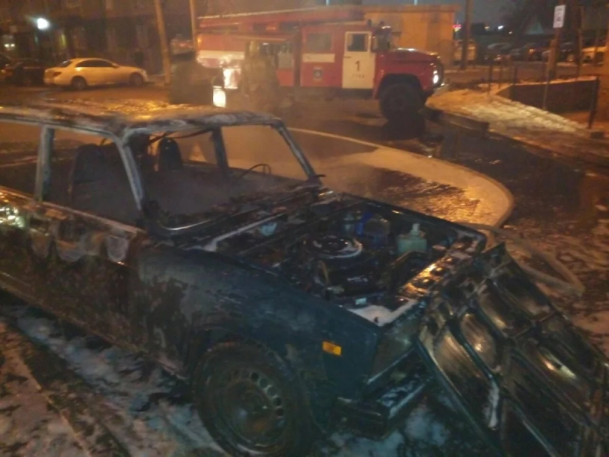 Отечественную "семерку" потушили за три минуты при помощи 9 человек и 2 единиц техники.