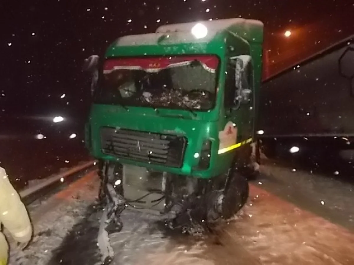 На тульской трассе "МАЗ" наехал на препятствие: есть пострадавшие