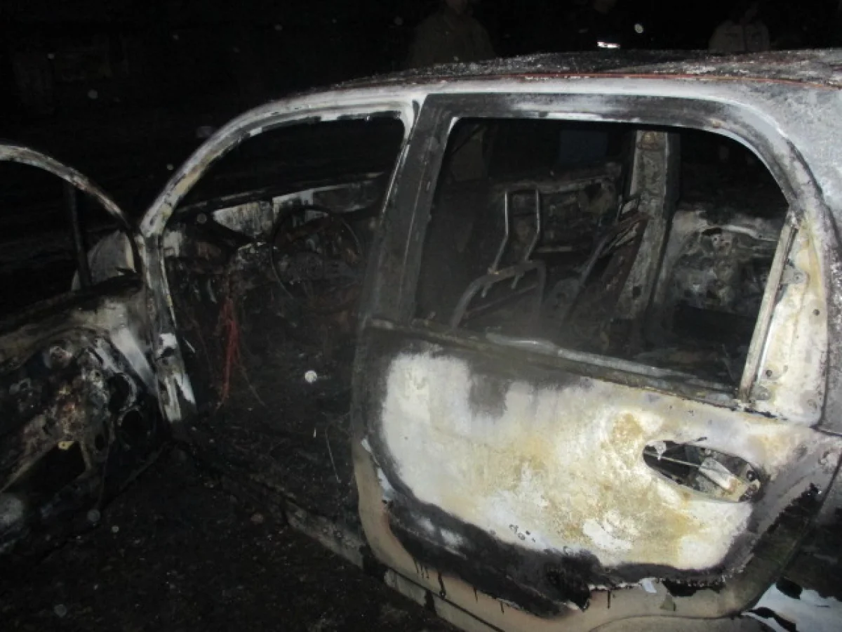 В результате происшествия автомобиль выгорел полностью. Для ликвидации последствий происшествия от МЧС России привлекалось 6 человек.