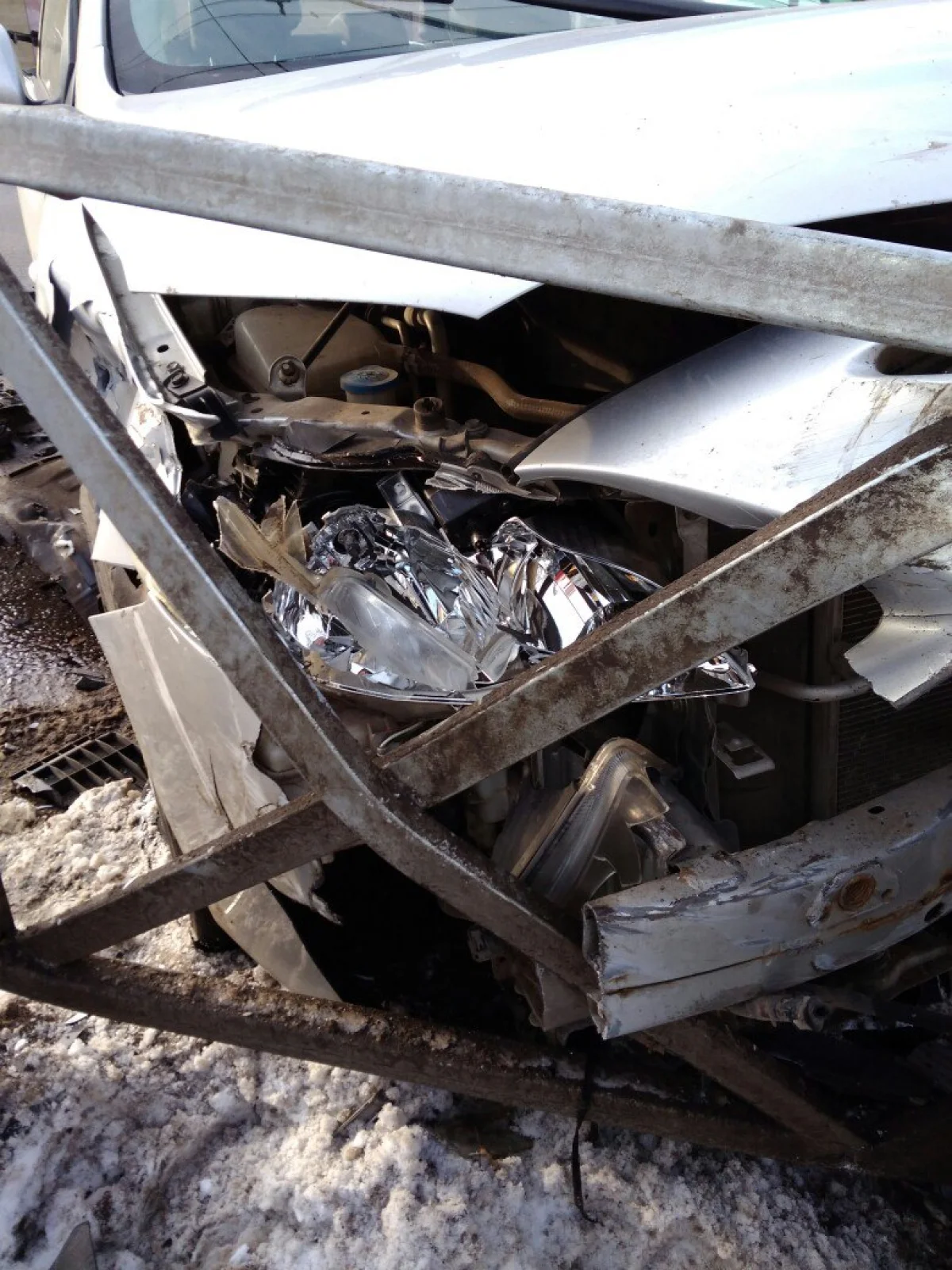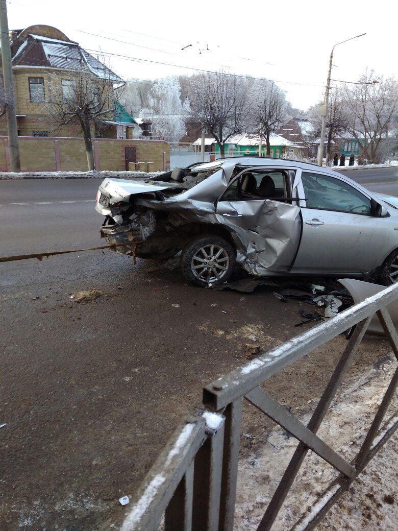Водитель автомобиля «Toyota Carolla» не справился с управлением и на полной скорости влетел в ограждение. Предположительно, мужчина был сильно пьян, а автомобиль даже не «переобут» в зимнюю резину.