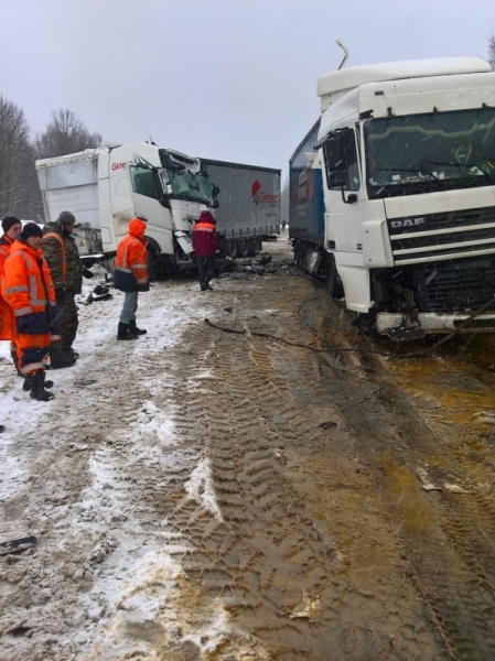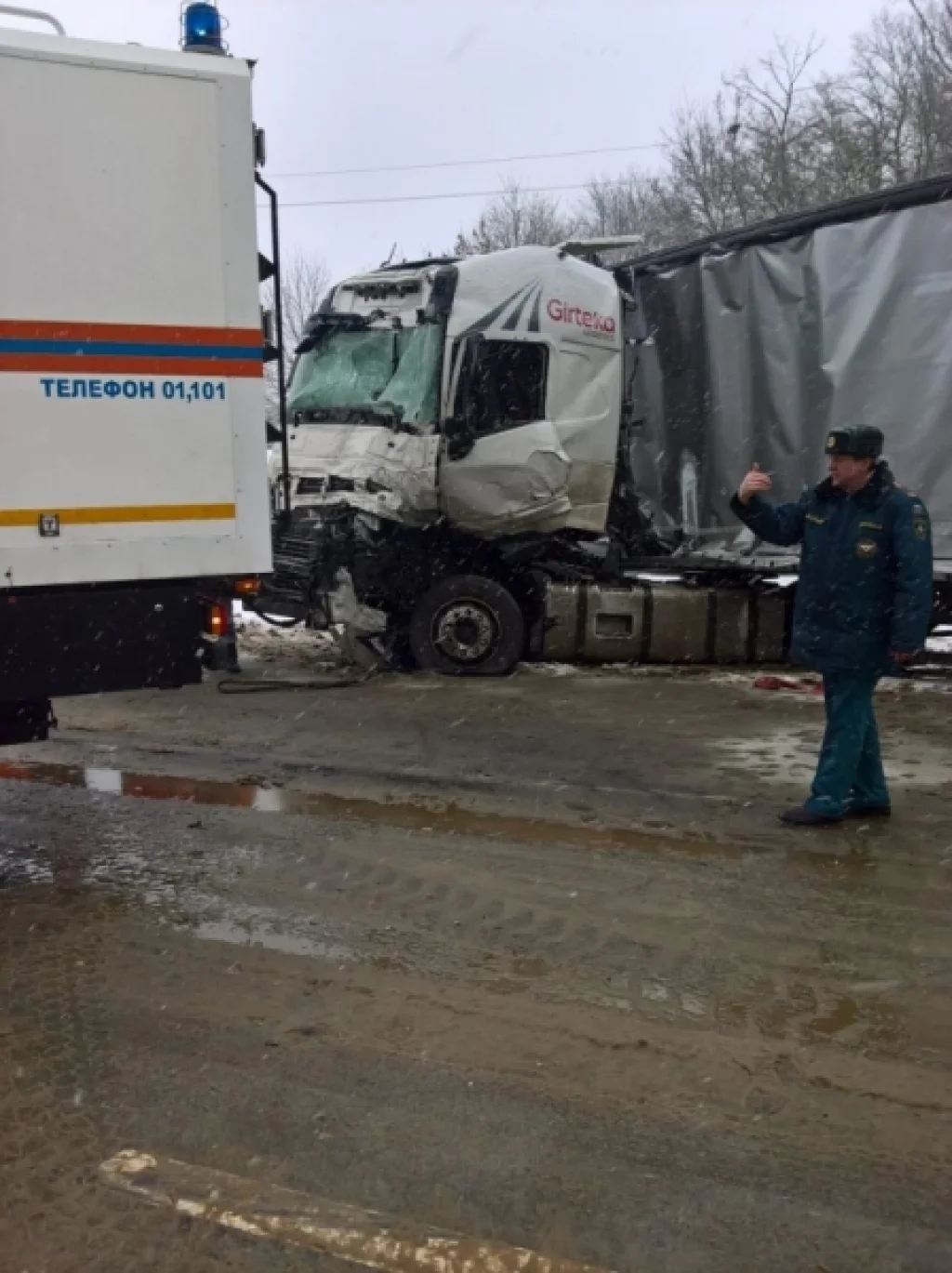 У поворота на Груманты ДТП с фурами и иномаркой спровоцировало многокилометровую пробку