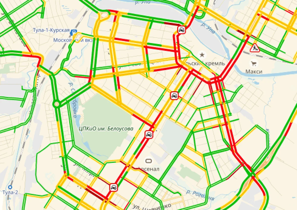 Накануне праздника Тула превратилась в гигантскую пробку: сразу 5 ДТП в центре