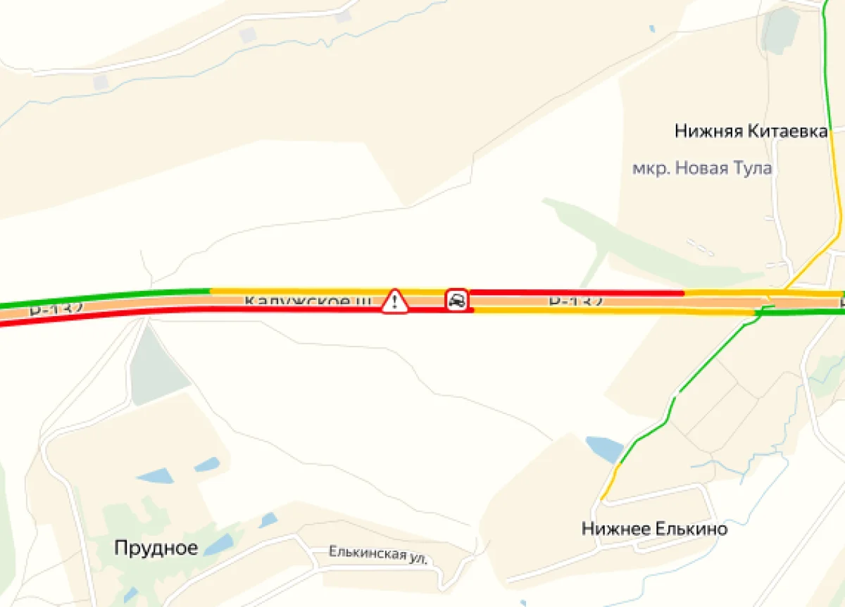 Как стало известно, на выезде из Тулы, на Калужском шоссе, образовалась огромная пробка. Причиной послужило ДТП. Предположительно столкнулись два грузовика. Машины заняли полосу в левом ряду. Другим водителям приходится их объезжать.