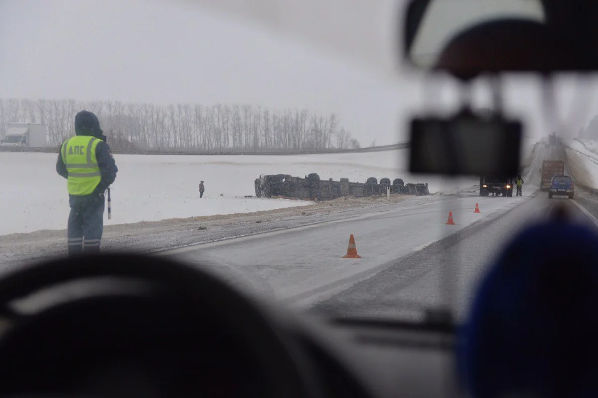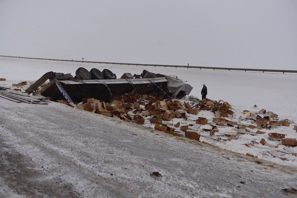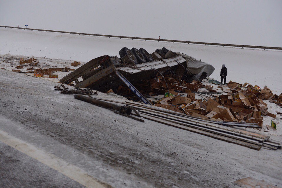 Как сообщает наш корреспондент, на 214 км трассы М4 «Дон» в кювет опрокинулась фура.
