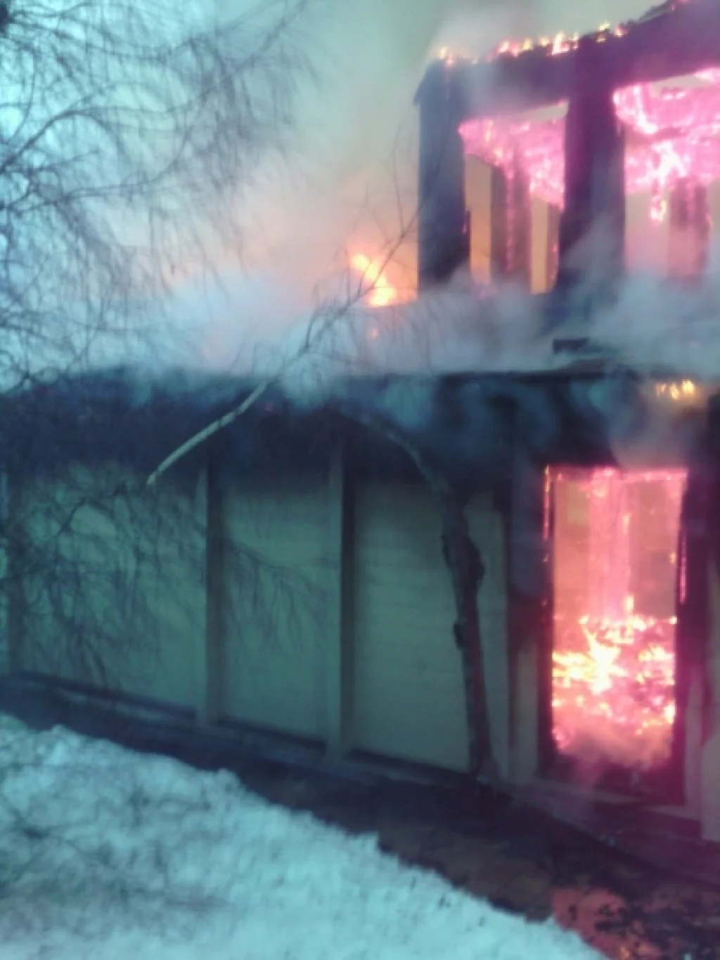 Утром 22 марта в 05:13 на пульт диспетчера службы спасения поступило сообщение о возгорании дома в п. Новиково Заокского района.