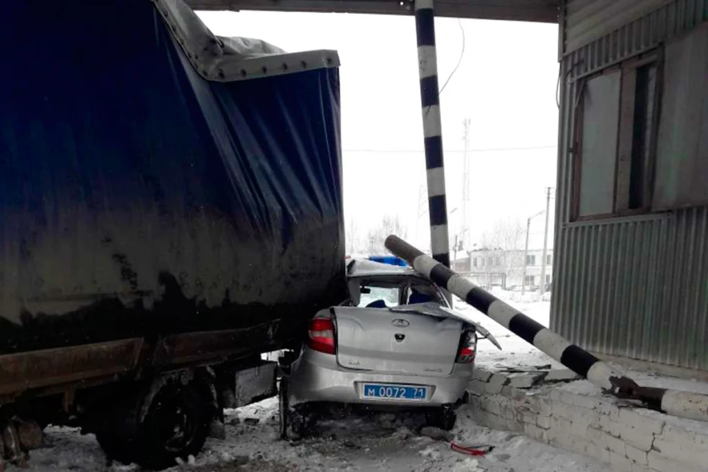 В Ефремове грузовик протаранил машину ДПС, положив на неё огромный «жезл»