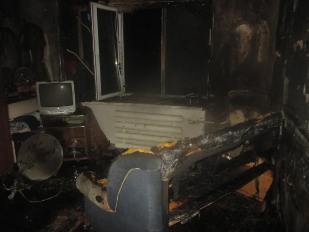 Пострадавших нет. В результате происшествия в комнате сгорел диван, квартира закоптилась.