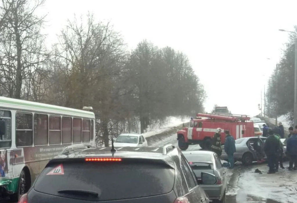 На Орловском шоссе в Туле столкнулись автобус "Лиаз" и легковушка: пострадал 22-летний молодой человек